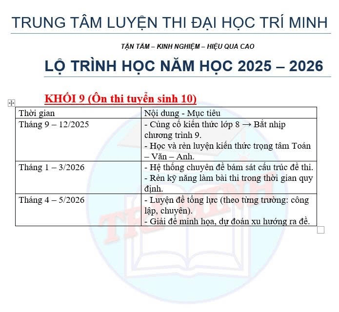 THỜI KHÓA BIỂU – KHAI GIẢNG KHÓA THÁNG 9 / 2025