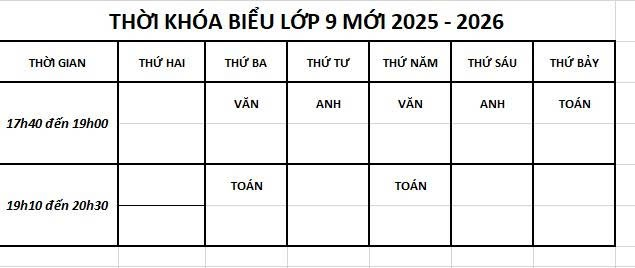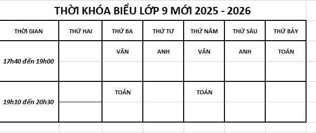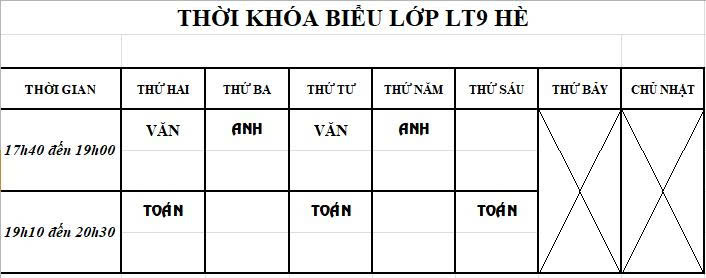 THỜI KHÓA BIỂU – LỚP 9 HÈ