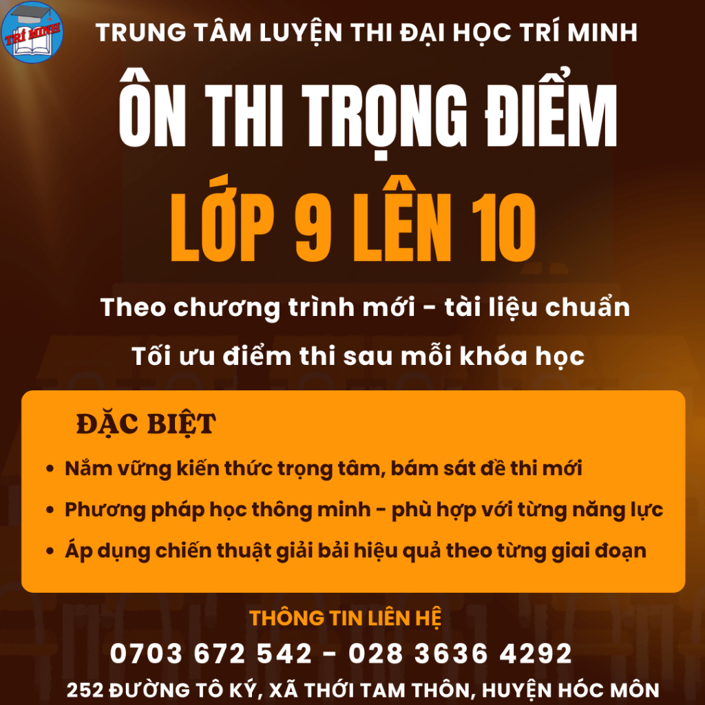 📚 Trung tâm luyện thi đại học Trí Minh khai giảng lớp ôn thi trọng điểm dành cho học sinh lớp 9, giúp bạn: