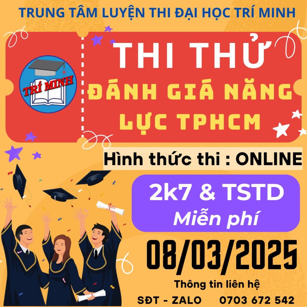 THI THỬ ĐÁNH GIÁ NĂNG LỰC – CƠ HỘI CỌ XÁT, KIỂM TRA NĂNG LỰC DÀNH CHO 2K7 & THÍ SINH TỰ DO TẠI TRUNG TÂM LTĐH TRÍ MINH! ![]()