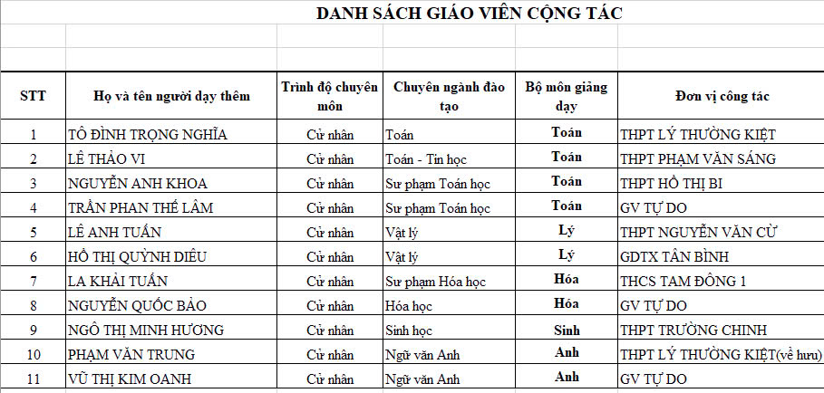 ĐỘI NGŨ GIÁO VIÊN KINH NGHIỆM TẠI TRUNG TÂM LUYỆN THI ĐẠI HỌC TRÍ MINH